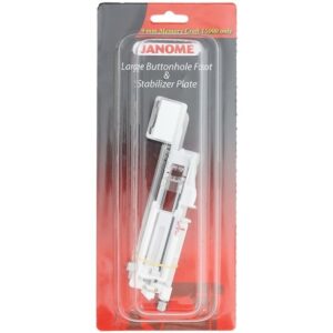 Ompele suuria napinläpiä erikoisille napeille (pituus 2,5 cm-5cm). Sopii erityisesti takkeihin ja paksummille kankaille kuten nahalle ja villalle. Pakkaukseen sisältyy paininjalka ja aluslevy.