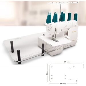 Baby Lock iso kirkas ompelutaso + ympyrän ompelulaitetoiminto. Hyvin säädettävät kannakkeet ja imukupit tason kiinnittämiseksi koneeseen.