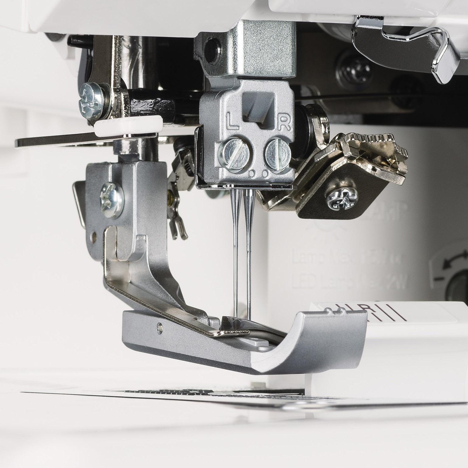 Baby Lock Victory -koneessa on vertikaaliset ja voimakkaat neulat, joiden avulla ompeleet ovat moitteettomia jopa paksuilla kankailla. Kaksi neulanpidikettä kahdelle eri neulalle. Super Stretch -neulaa (HAx1SP) suositellaan huolittelu/overlock ompeleille. Super Stretch -neulassa on pyöreä pää, ja se lävistää kankaan vaivatta kuitenkaan vahingoittamatta sitä. Neula on suunniteltu toimimaan saumurin kovassa ompelunopeudessa: neulan muotoilu edistää siepparin pääsemistä neulan lähelle luoden näin täydellisiä ompeleita ja saumoja. Muista vaihtaa neula ajoittain –mieluiten aina aloittaessasi uuden ompeluprojektin.