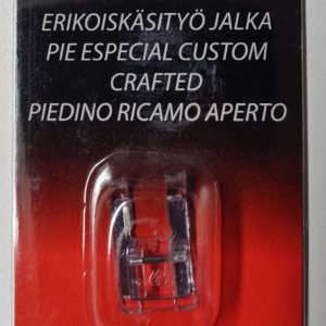 Erikoiskäsityö jalka (F2) laakasukkula malleihin. Avonainen jalka mahdollistaa paremman näkyvyyden ommellessa.