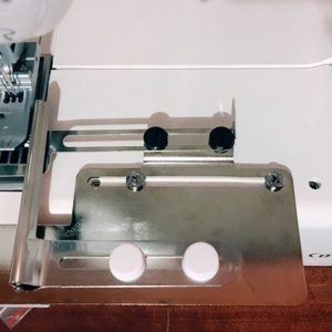 Pakkauksessa 1/8″ ja 3/16″ tereen ompelujalat pikakiinnityksellä ohuemmalle (3mm) ja paksummalle (5mm)tereelle.