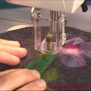 - Läpinäkyvä paininjalka, joka on helppo säätää eripaksuisille materiaalikerroksilla
