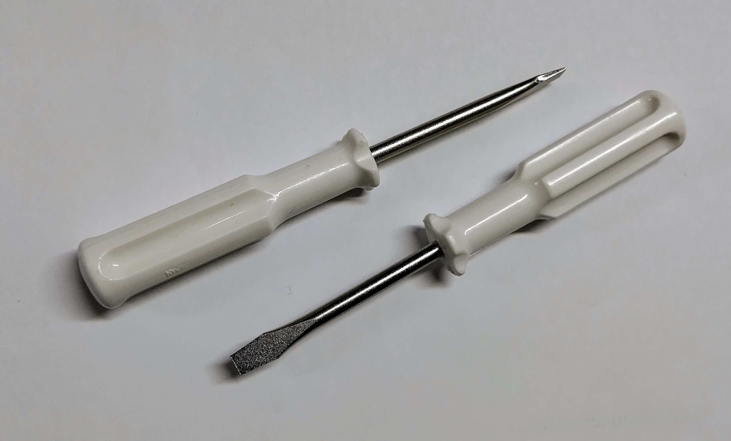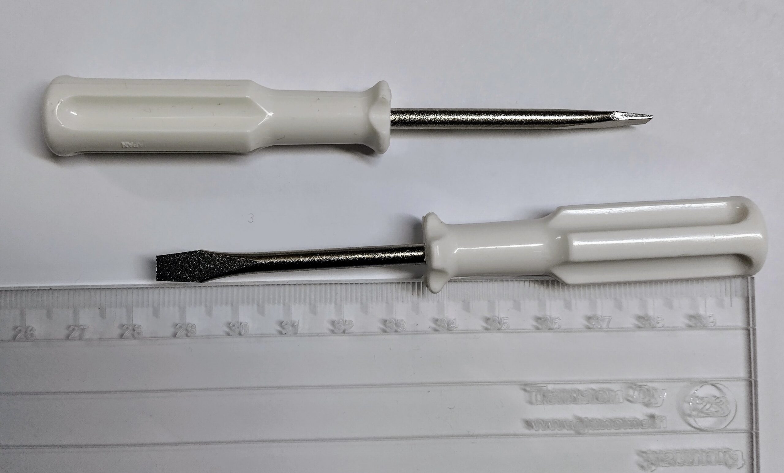 Janome ruuvimeisseli, leveämpi pää, pidempi (kokonaismitta 11,5 cm).