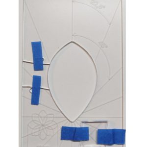 Kaavaimella saat ommeltua 4-8-16 lehtisen kukan, halkaisija 190mm ja kääntökulma 22,5° tai 45°, kaavain jalan (ruler jalan) avulla. tarvitset myös pp-apuviivakiekon no 52.