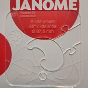 8 käännöksen seppeleen (kääntökulma 45° ja halkaisija 67,5mm) voit ommella kaavain jalan (ruler jalan) avulla. Yhteensopiva no 22 kanssa, tarvitset myös pp-apuviivain kiekon no 52.