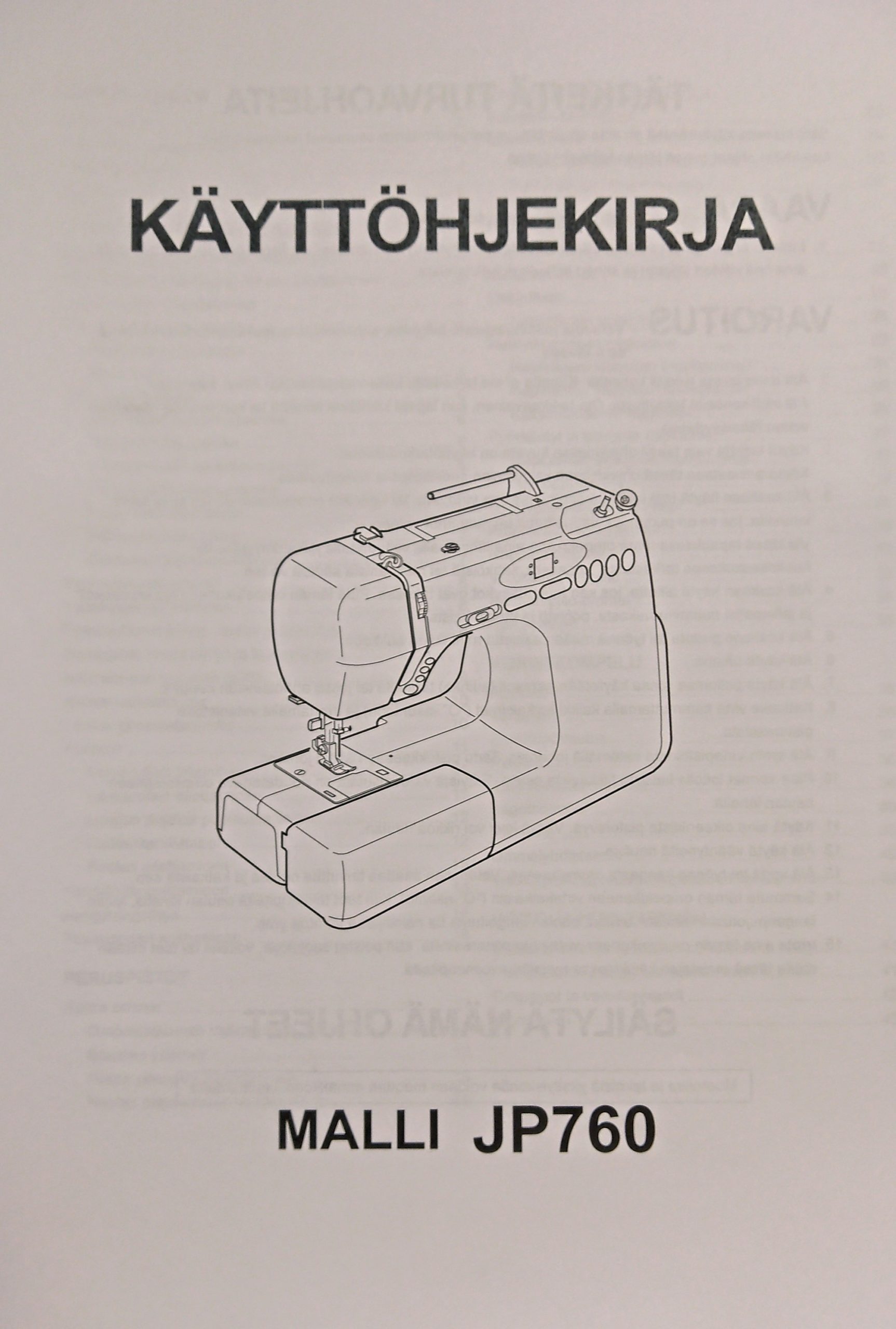 Suomenkielinen ohjekirja Janome Jem Platinum 760 (JP760) koneeseen.