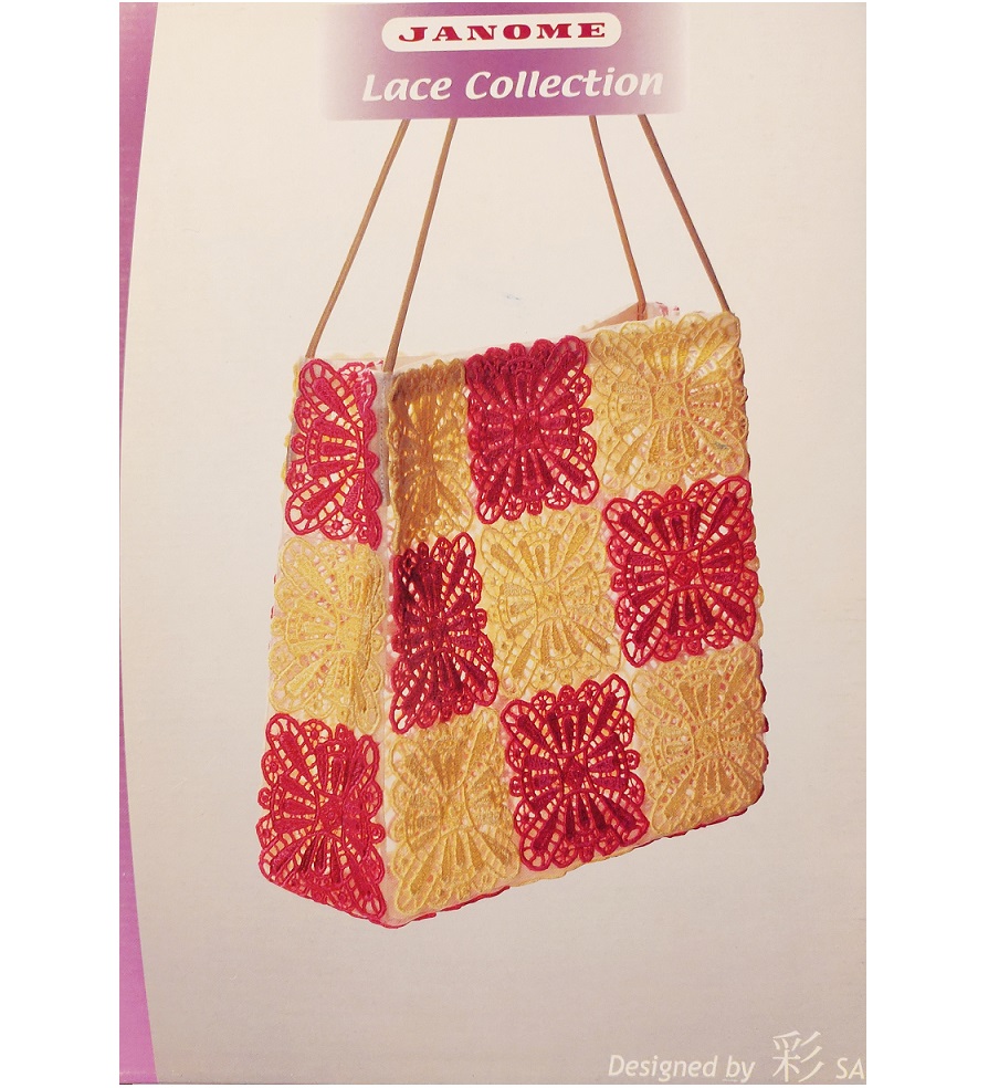 Kirjontakuvio kortti Lace collection (1013) sisältää 12 erilaista pitsikuviota. Kuviot ommellaan veteen liukenevalle tukikankaalle. Avattu.