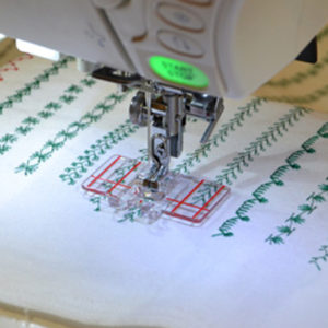 Paininjalka auttaa koristeommelrivien ohjaamisessa, laakasukkula koneisiin.