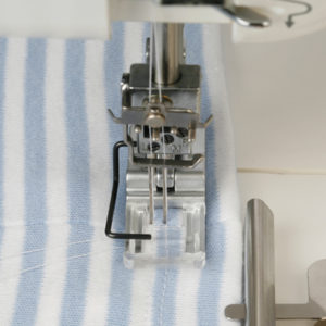 Läpinäkyvä paininjalka pikakiinnityksellä 3-neulaiseen peitetikkikoneeseen.