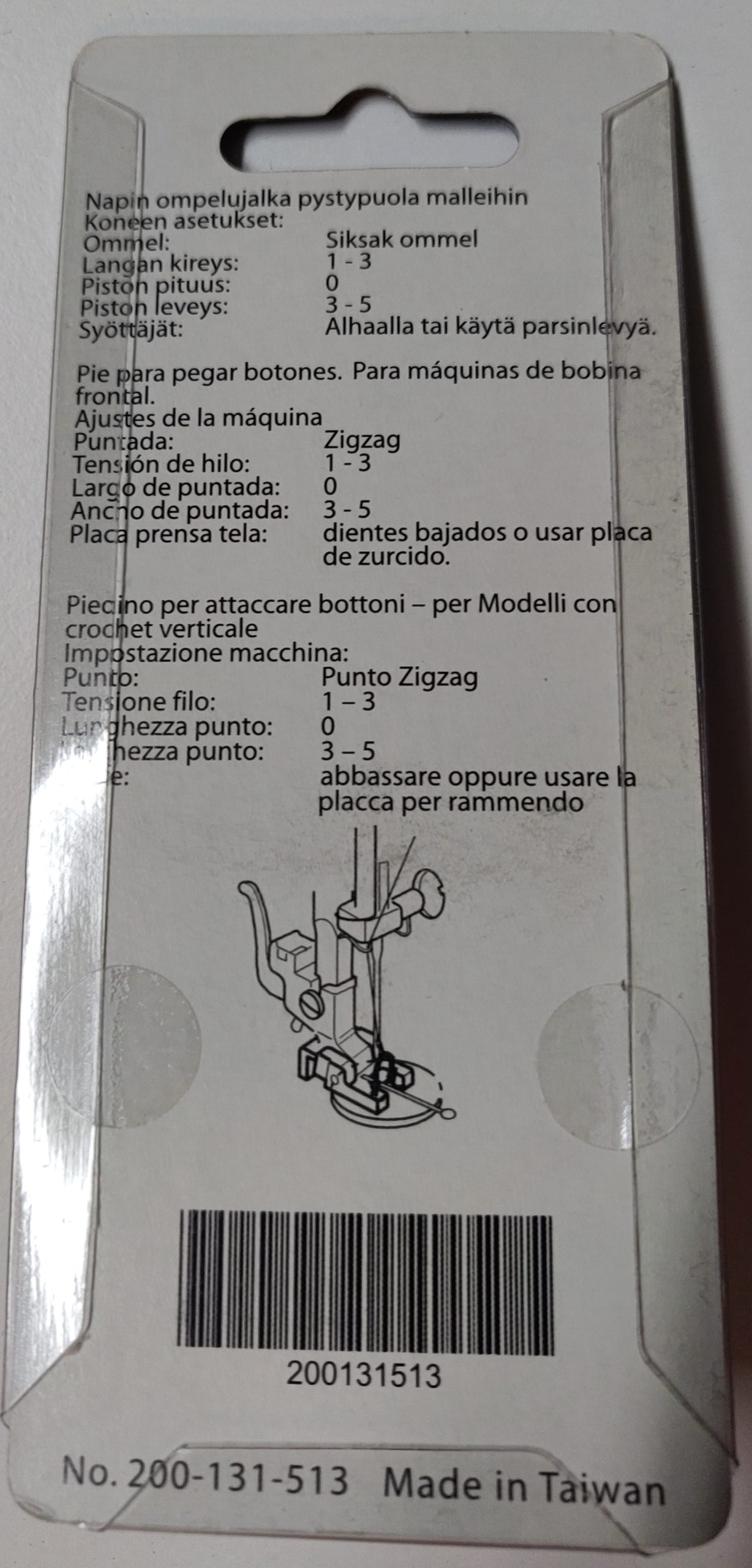 Paininjalka napin ompeluun pystysukkula koneisiin (5mm).