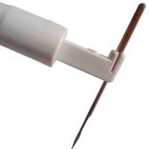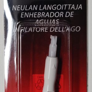 Neulan langoittajalla saat laitettua kätevästi langan neulansilmään. Voit käyttää toista puolta neulan laittamiseen paikalleen.