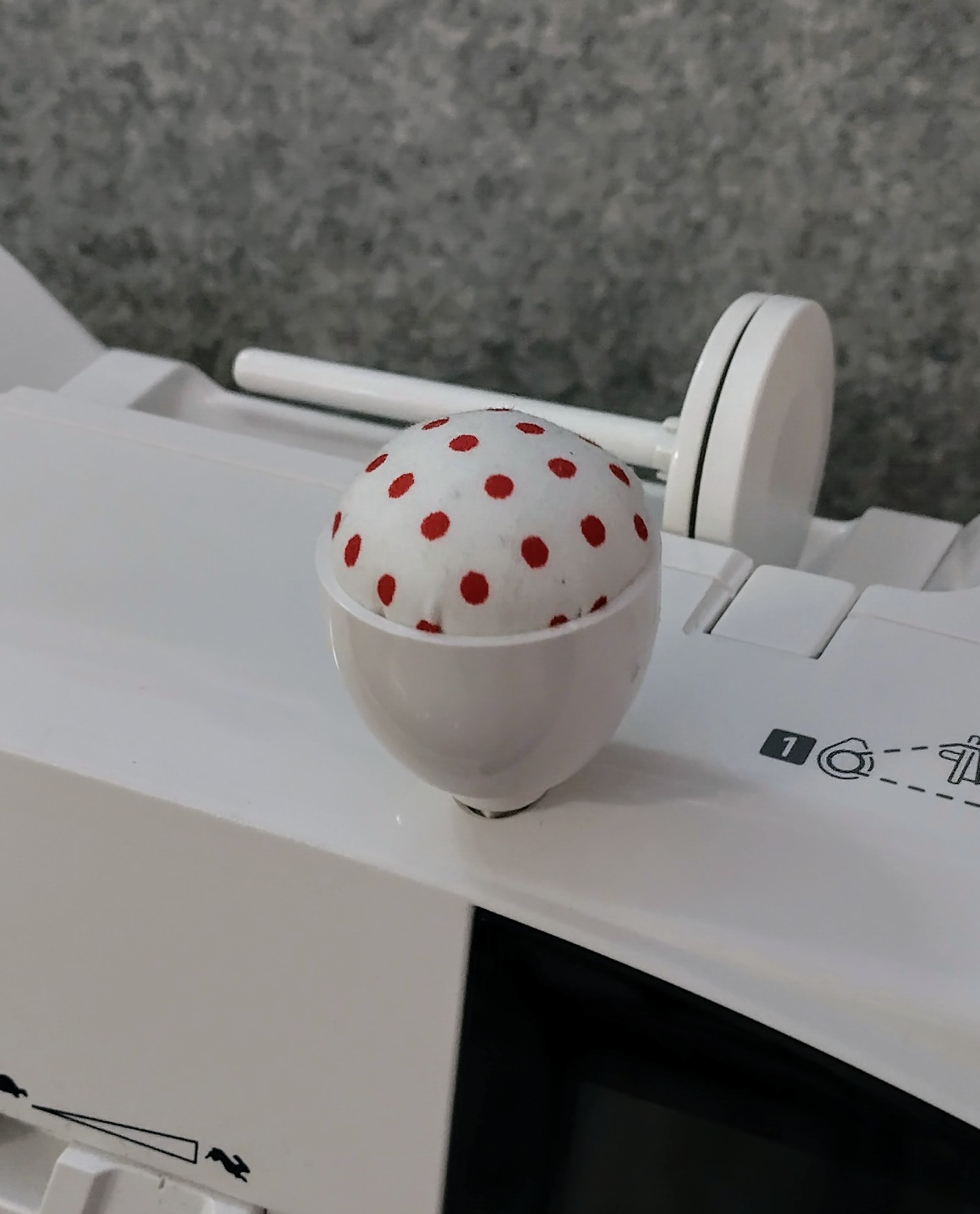Neulatyyny ompelukoneeseen. Kiinnitys lisälankatapin paikkaan. Sopii kaikkiin koneisiin, joissa on paikka lisälankatapille.