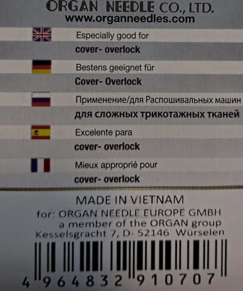 5 kpl ELx705 neuloja kokoa 80/12 peitetikkikoneisiin ja saumureihin, ohuiden trikoiden ompeluun.