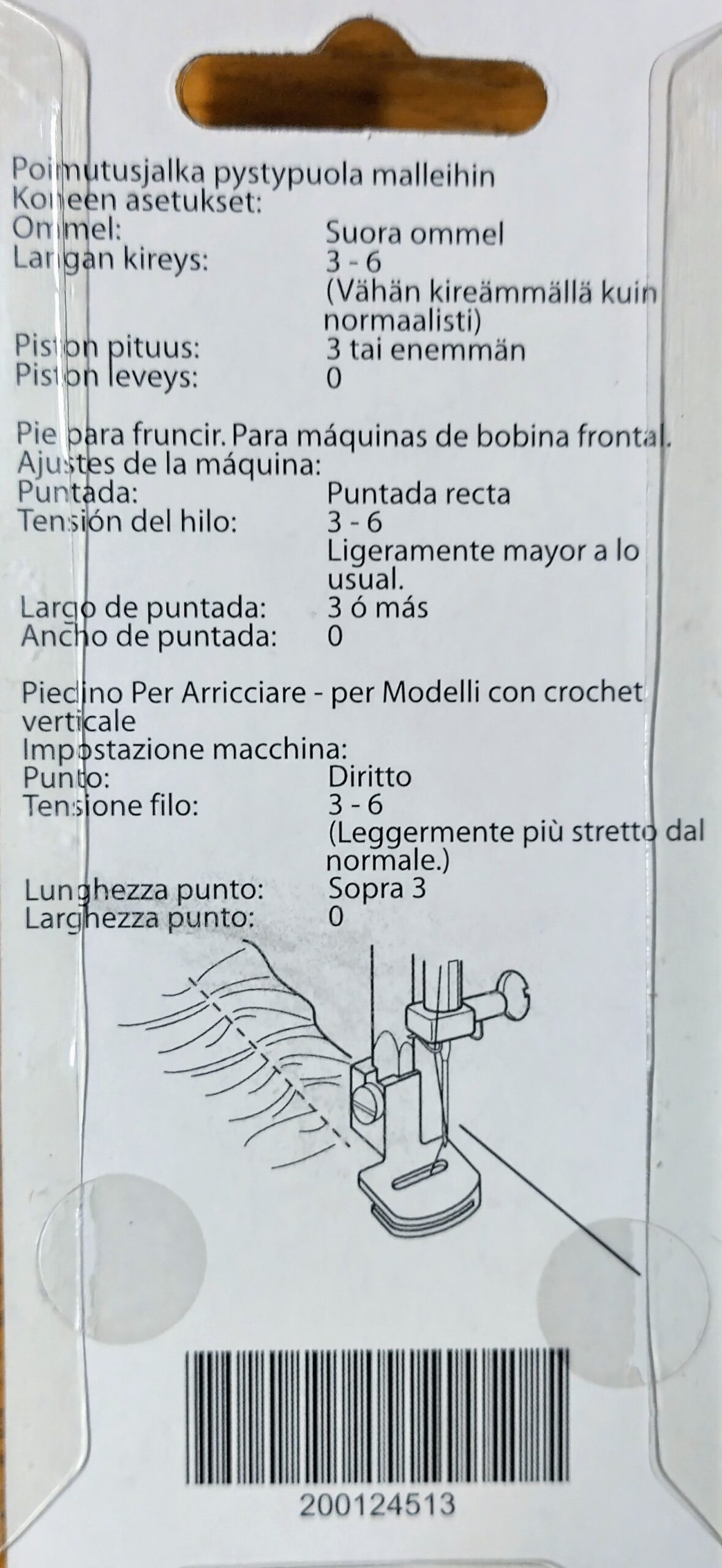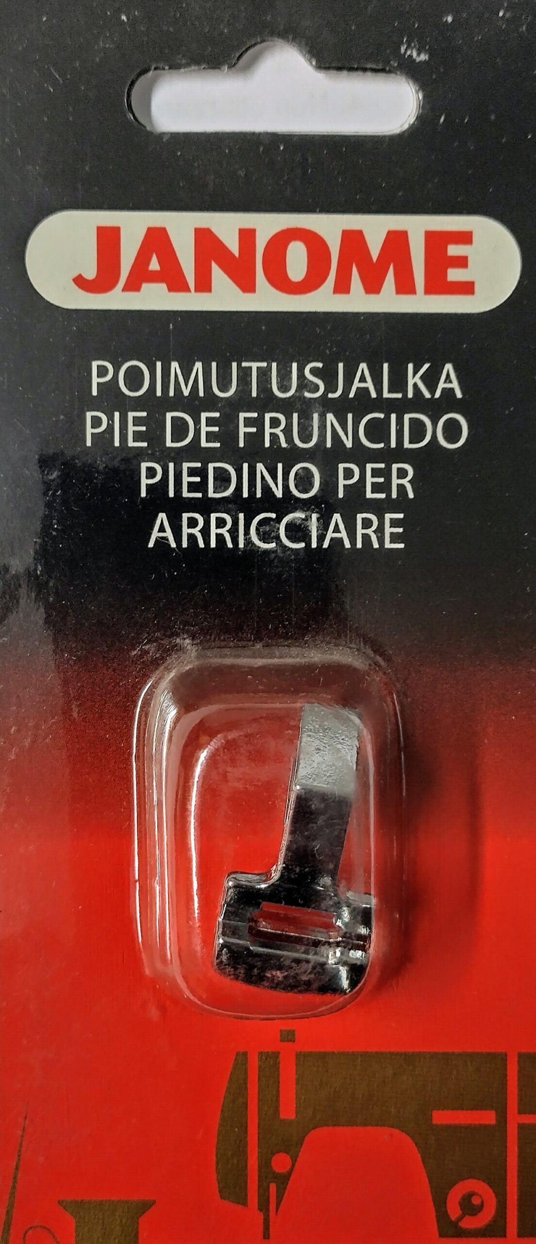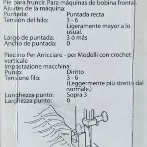Poimutus- ja rypytysjalka pystysukkula koneisiin. Ompele kauniit poimutukset ja voit myös samalla kiinnittää poimutuksen suoraan kankaaseen. Tätä jalkaa voidaan käyttää kevyiden kankaiden rypyttämiseen. Ompele suoraa ommelta – paininjalka hoitaa loput.