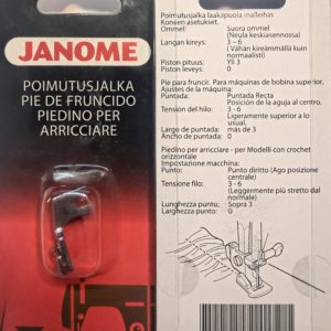 Poimutusjalka pystysukkula koneisiin. Ompele kauniit poimutukset ja voit myös samalla kiinnittää poimutuksen suoraan kankaaseen.